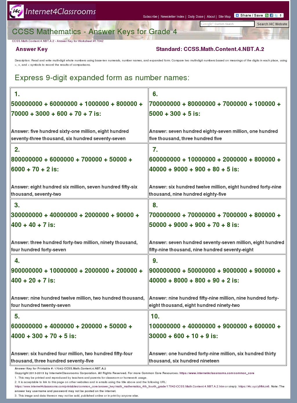 4.NF.C.6 Worksheets - Common Core Math - education These worksheets can help students practice this Common Core State Standards skill. Worksheets. ... Lock & Key. Practice is one of the keys to mastering concepts, and this third grade math worksheet offers great practice with equivalent fractions and decimals. 3rd grade . Math . Worksheet. Common Core Mapping for Grade 7 - Online Math Learning Show Worksheets/Games The Number System 7.NS.A.1 Apply and extend previous understandings of addition and subtraction to add and subtract rational numbers; represent addition and subtraction on a horizontal or vertical number line diagram. Show Lessons 7.NS.A.1a Describe situations in which opposite quantities combine to make 0.